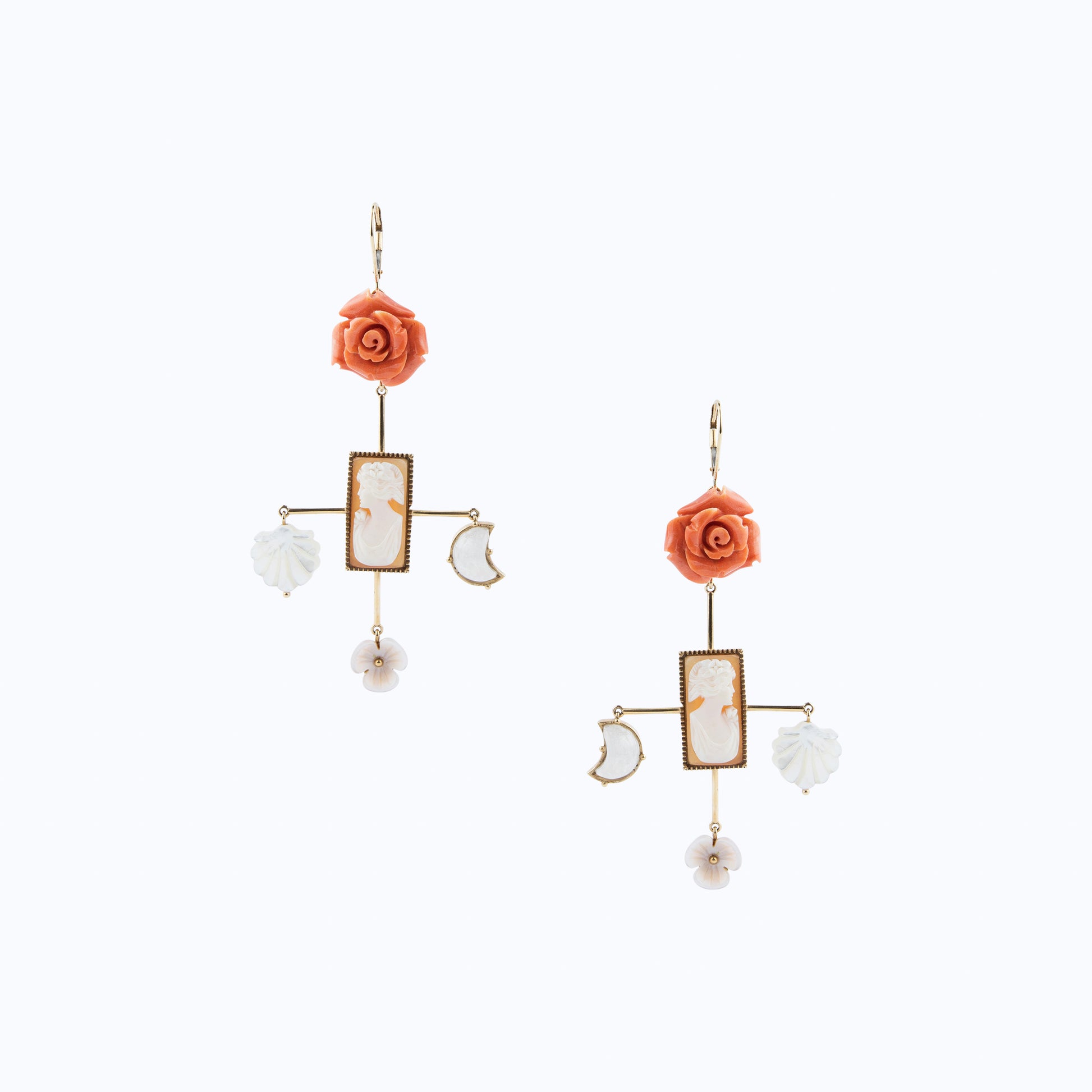 Gemstones: Coral, Hand-Carved Cameo, Mother-of-Pearl, Moonstone