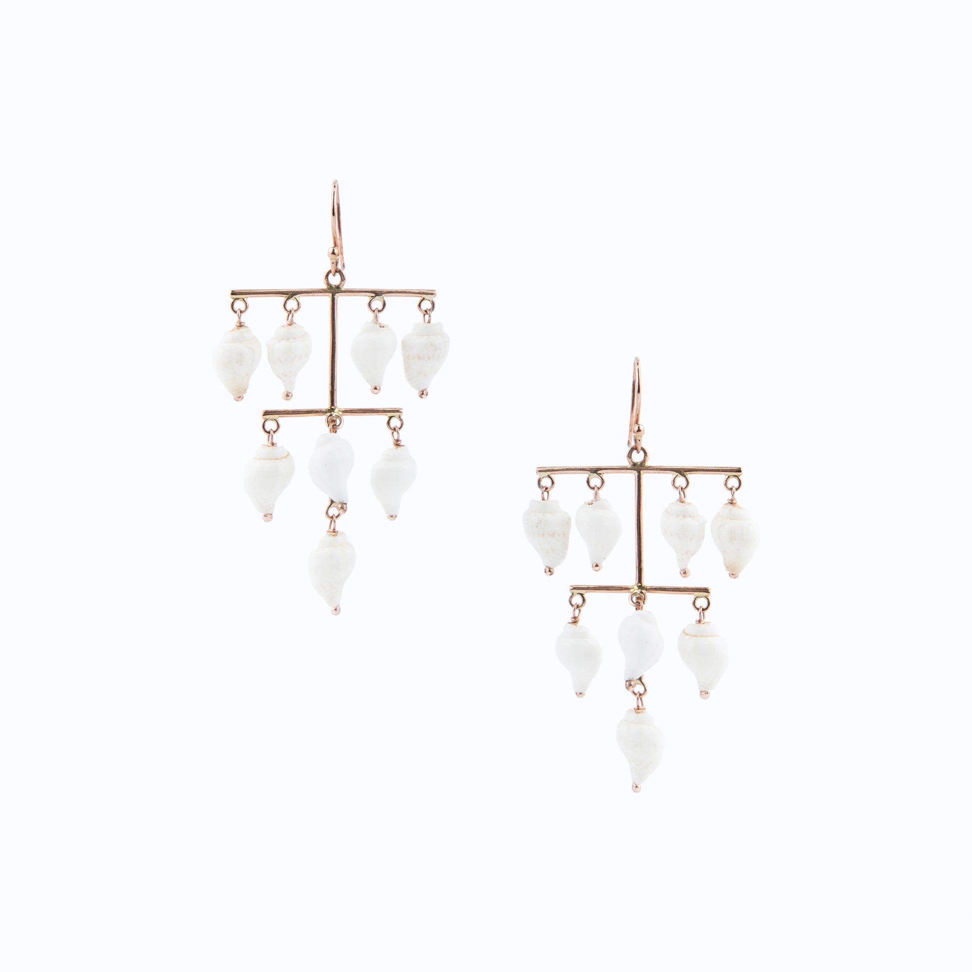 nspired by the kinetic elegance of Alexander Calder’s iconic mobiles, the Alexandra Bar Shell Earrings feature double rose gold bars from which natural shell danglers sway gracefully. Crafted in warm 9ct rose gold, the design celebrates fluidity, balance, and modern artistry, turning each movement into a subtle dance of light and texture. Sculptural yet wearable, these earrings are a contemporary statement of refined craftsmanship.