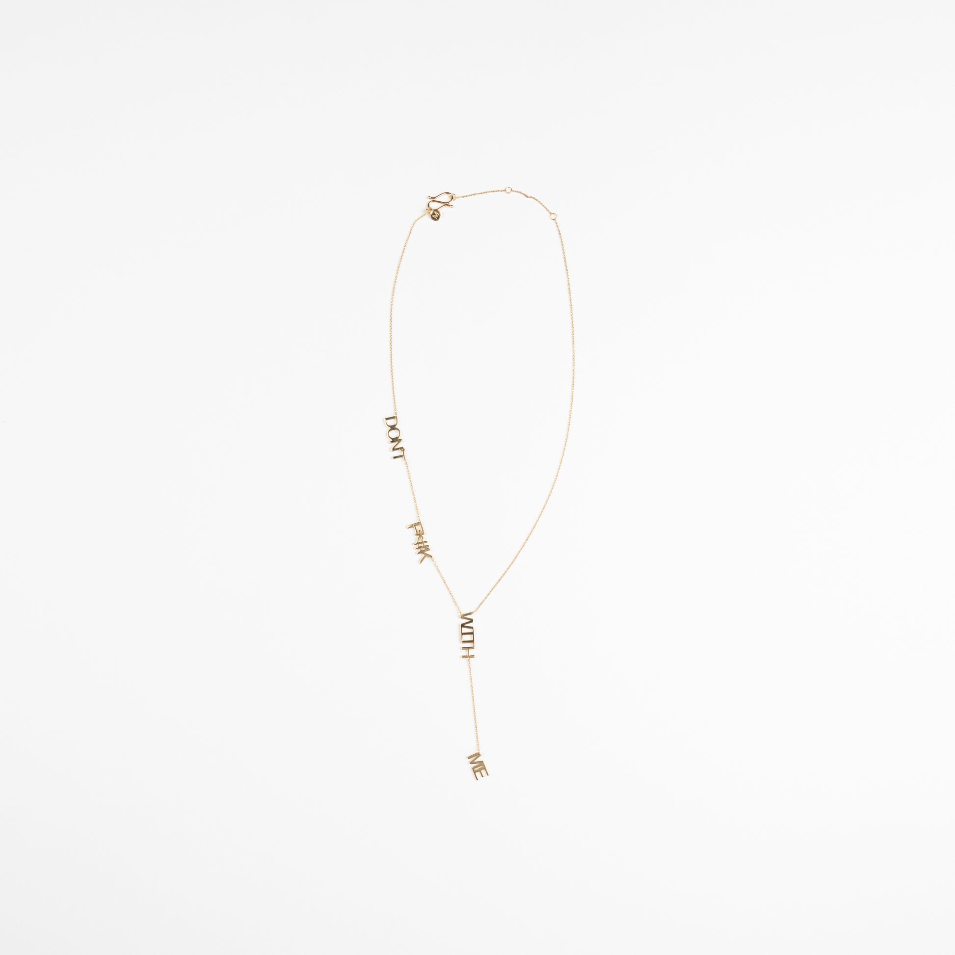 Bold, unapologetic, and effortlessly modern, the "DON’T F**K WITH ME" Necklace is crafted from solid 9‑carat gold and designed to make a statement. The clean, sculptural lettering sits prominently on a delicate chain, balancing strength with sophistication. Perfect for expressing confidence and individuality, this necklace can be worn alone for a striking focal point or layered with other pieces for a contemporary, curated look. A piece that blends edgy attitude with refined craftsmanship, transforming everyday style into a declaration of modern luxury.