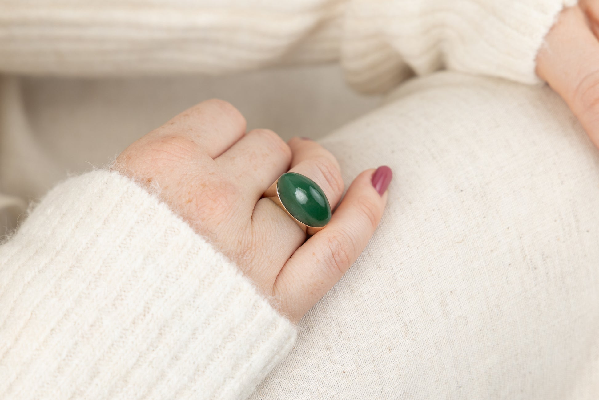 Architectural and elegant, the Nancy Ring explores the harmony between gold and stone. Handcrafted in 9-carat yellow gold, its bold geometric form frames a polished agate, creating a refined contrast of warmth and natural texture.